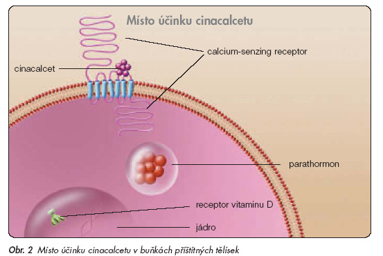 Kalcimimetika jsou zcela novou skupinou léčiv, která lze využít k potlačení hyperparatyreózy, jde o agonisty calcium- senzing receptoru (obr. 2).