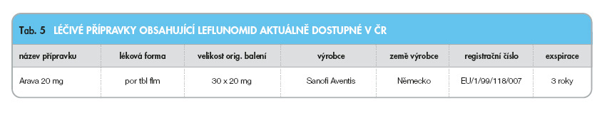 Závažné nežádoucí účinky leflunomidu a biologických léků (tab. 4) jsou srovnatelné [28].