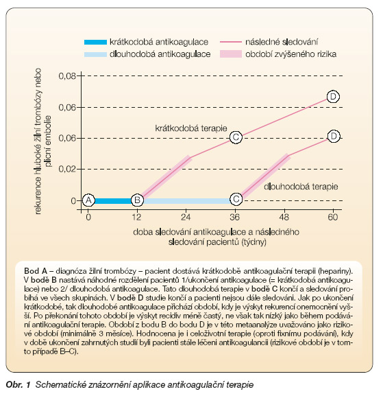 Kumulativní metaanalýza prokázala, že s prodlužující se antikoagulací klesá riziko recidivy ŽT (p < 0,001). Přínos dlouhodobé terapie se postupně snižoval s prodlužující se antikoagulací ve skupině s krátkodobou terapií, a to jak při hodnocení relativního rizika (p = 0,04), tak rozdílu rizik (p = 0,005).