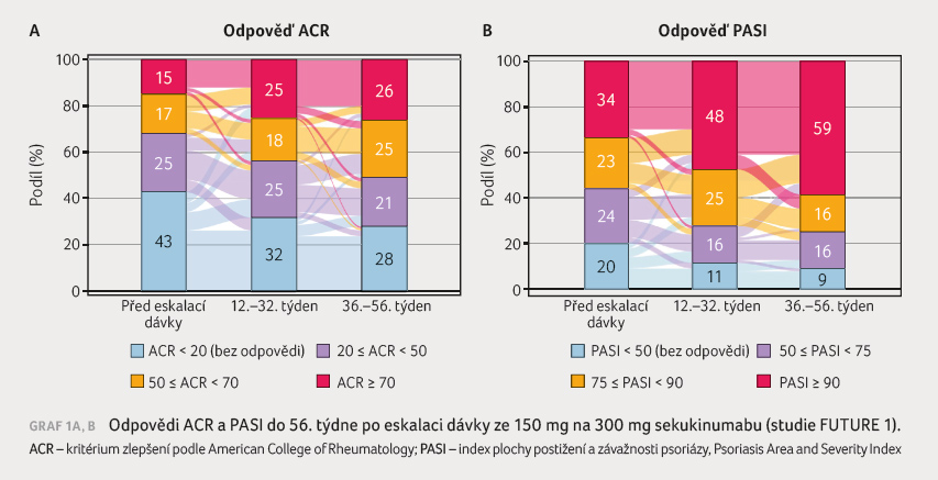 než 80 %; 56 % nemocných léčených 75 mg sekukinumabu byla