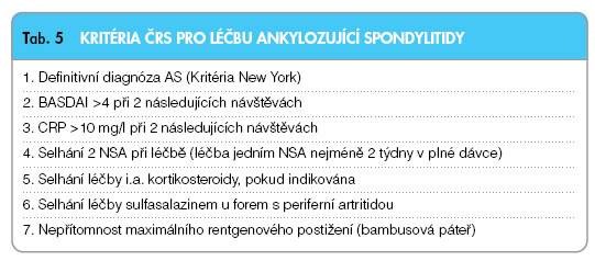 Indikační kritéria České revmatologické společnosti viz tab. 5.