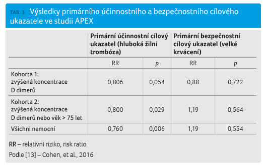 ![GRAF 2 primární účinnostní cílový ukazatel studie apeX (výsledky – kohorta 1, zvýšená koncentrace d dimerů); podle [13] – Cohen, et al., 2016. arr – absolutní redukce rizika; n – počet pacientů; nnt – počet osob, které je třeba léčit, number needed to treat; rrr – relativní redukce rizika](https://www.remedia.cz/photo-a-31086---.jpg)